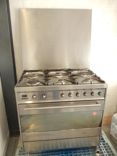 oven multi functioneel in inox met 6 vuurpitten, merk SMEG, met achterplaat en dampkap (siemens)