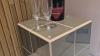 Design tegeltafel handmade 31x31x31H zandbruin met paarse voeg