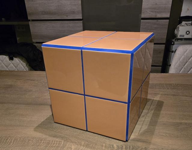 Design tegeltafel handmade 31x31x31H oranje met blauwe voeg
