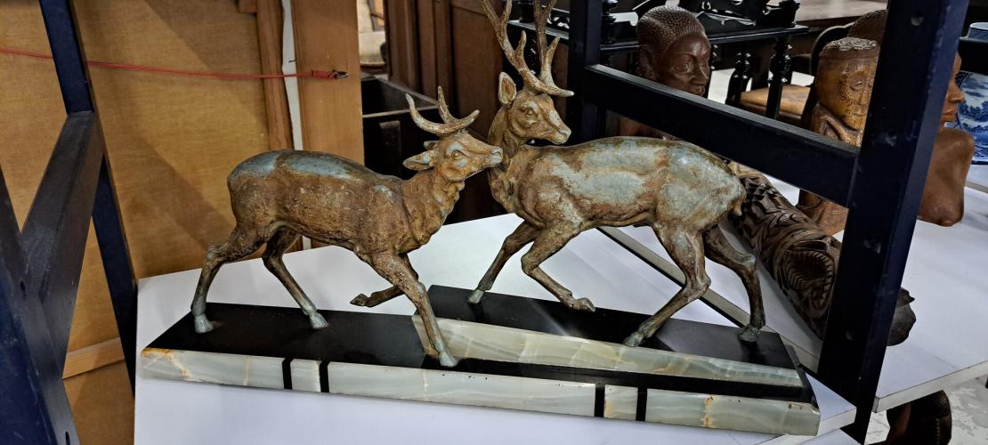 2 herten op marmeren voet