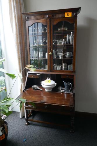 Antieken Engelse bureau secretaire met glazen vitrine ( zonder inhoud )