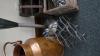 Koperen paraplubak - wijnflesrekje - vintage houten kistje - staander voor champagnefles