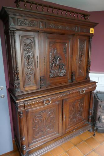 Antieken Frans keukenbuffet in eik met houtsnijwerk