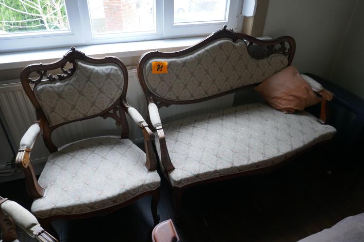 Antieken bank met bijhorende fauteuils en stoelen in een klassieke Rococo stijl met gedetailleerd snijwerk - 5 meubelstukken