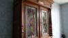 Antieken buffetkast in renaissance stijl met glasramen en met houtsnijwerk