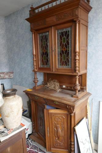 Antieken buffetkast in renaissance stijl met glasramen