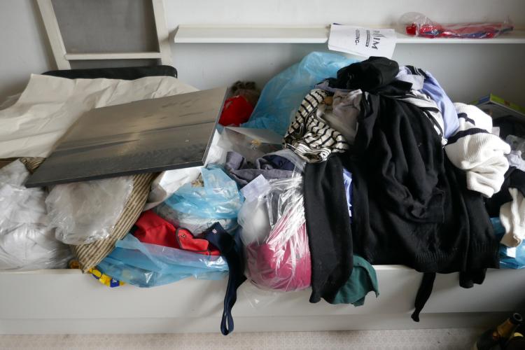 Inhoud kamer 2de verdieping : diverse kledijstukken - kapstokken - tapijt - kinderbed - vintage kasten - enz….