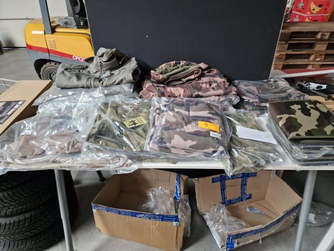 ong. 32 stuks camouflagekledij (vesten, sweater, schrijfmap
