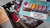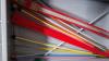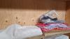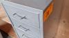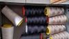 metalen ladenkastje met naaiaccessoires (garen, patronen, stoffencoupons)
