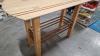 hoge massiefhouten tafel, half-ovaalvormig, massief, afmeting +/- 75 x 175 x 110 cmh
