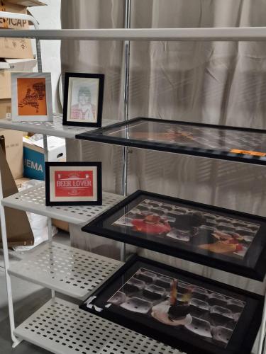 3 kleine en 3 grote fotokaders met kunstfoto's, o.a. thema DE RODE DUIVELS - SUPPORTER