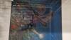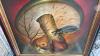 groot 80x90 schilderij, ingekaderd, op doek, getiteld "EENZAME", getekend DELTO + 2 kleinere schilderijen op doek, getekend, ingekaderd + 2 kleinere schilderijen
