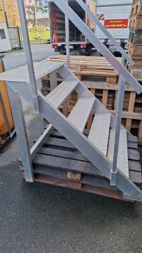 alu trap met afneembare leuningen, 100cmB, 135cm diep, laatste trede = 100cmH