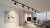 4 x 6 stuks 18 watt 4000K 1800 lumen LED Railspot cilinder zand zwart afm. Ø 63 x 145mm - draaibaar 350° en kantelbaar 90° materiaal aluminum kop en PC basis - 2 stuks 100cm rail materiaal aluminium - Afdichting IP20 - levensduur 30.000 uren - 1 stuk door verbinder en 1 stuk L verbinding inclusief - geschikt voor binnen - voltage 220-240V - SKU 1125 SKU 905 SKU 827 SKU 825