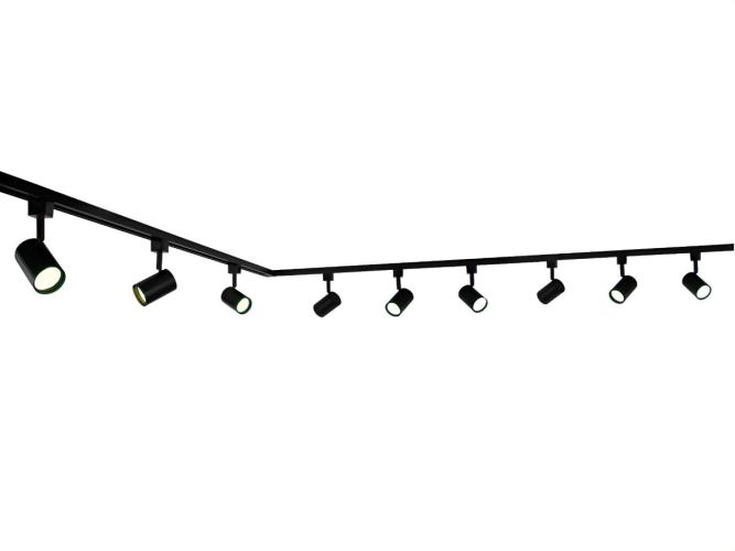 1 x 1 stuk 100cm en 1 stuk 200cm rail - materiaal aluminium - bevestiging inclusief - 220-240V - afdichting IP20 - 1 stuk door verbinder en 1 stuk L verbinding inclusief - product kleur zand zwart - 9 stuk railspots GU10 armatuur afm. Ø 55 x 102mm draaibaar 350° en kantelbaar 90° materiaal aluminum kop en kunstof basis - bulb niet inbegrepen - de rail kan eenvoudig op de gewenste lengte worden gezaagd - geschikt voor binnen - SKU 825 SKU 827 SKU 905 SKU 907 SKU 1121
