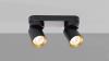 4 x GU10 Opbouwspot Armatuur dubbel cilinder zand zwart en goud draaibaar - afdichting IP20 - product kleur zand zwart en goud ring - afm. Ø 60 x 100mm - afm wandhouder 220 x 60 x 25mm - draaibaar 350° en kantelbaar 50° - materiaal aluminum en ijzer - bevestiging inclusief - fitting GU10 - bulb niet inbegrepen - geschikt voor binnen - 2 x bulb invoer - voltage 220-240V - max 40 watt - SKU 00954