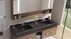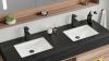 Badkamermeubel 2-persoons - 150 cm - Hout decor met zwarte marmeren wasbak - Incl. kranen