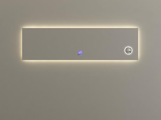 Voorzien van: Touch bediening via digitaal display – LED verlichting in 3 kleuren, dimbaar – Bluetooth & speakers – Digitale klok – Digitale temperatuurmeter – 220 volt aansluiting – Anti-fog technologie door verwarming in de spiegel – Vergrootglas (vergroot 3x) in de spiegel Ø10 cm - Kopervrije spiegel - 1,5mm explosieveilige laag aan de achterkant.