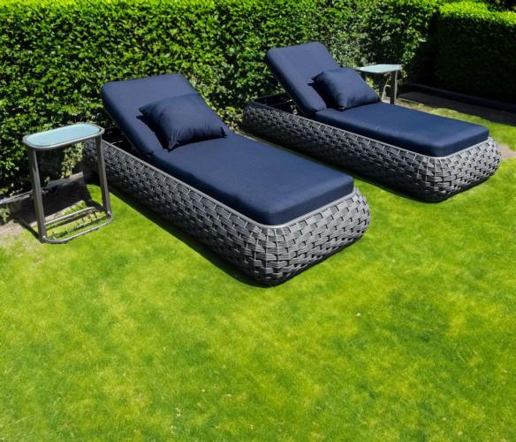 Ligbeddenset 2-delig dark antraciet wicker / light grey kussens