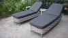Bijzonderheden: Twee comfortabele ligbedden - Twee bijzettafeltjes - Waterafstotende kussens dikte 10 cm - Weerbestendig vlechtwerk - 180 grams waterproof bekleding