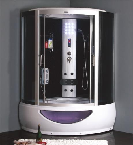 Stoomcabine met massagebad - Halfrond - Wit bad met zwarte cabine 135x135x200cm