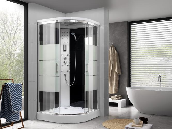 Voorzien van: Regendouche - Handdouche - Bedieningspaneel - LED-verlichting (12 stuks) - Schuifdeuren met rolmechanisme en afsluitstrips - Gehard veiligheidsglas.