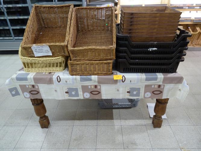 Uitschuifbare houten tafel + diverse mandjes
