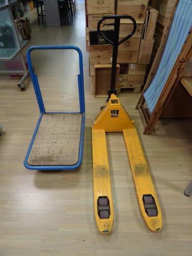 Transpallet + metalen transportkar