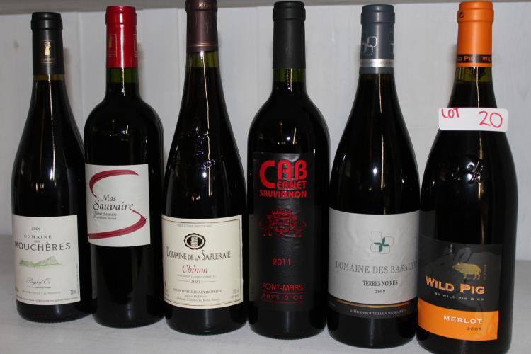 6 x Fles wijn rood assortie