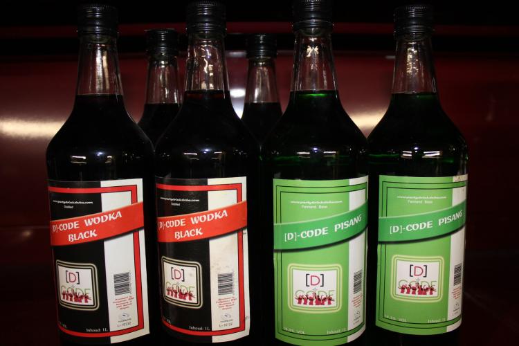 6 flessen likeur 1 liter 4 x black vodka 15 %2 x pisang 15 % alc
