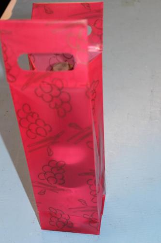 50 (2 x 25) stevige plastiek geschenkzak voor 1 wijnfles kleur ; rood met druiven motief