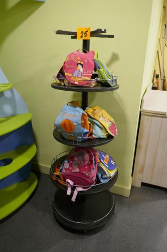 Verrijdbare display met 8 kinderrugzakjes