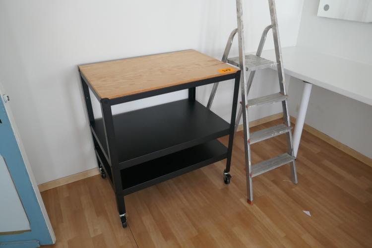 Roltafel met bodemschap zwarte kleur + alu trapladder