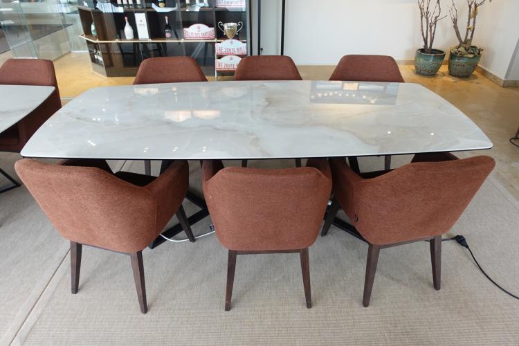 Design eettafel 2400x1100x740, 6x stoel & tapijt