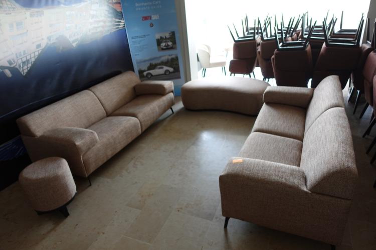 3x Zitbank in stof 2300x900 & 1x poef
