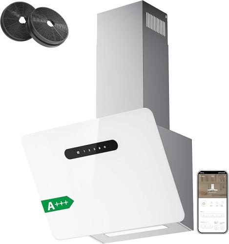 Ongebruikt, getest en werkend, volledig, ok, CIARRA CBCW6736K Hoekige Afzuigkap (60 cm) Wi-Fi App Touch Control met CBCF003 Koolstoffilters Schoorsteen Ventilatiekap met LED-verlichting Kanaal & Recirculerende Keuken Afzuigkap Ventilator [Energieklasse A+++], B0D2Q7D3LR