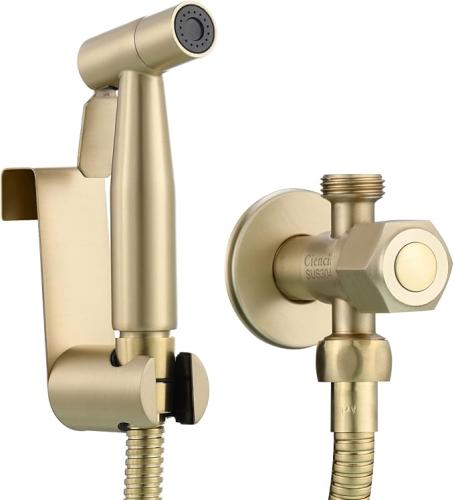 Ongebruikt, volledig, ok, Tecmolog WS024J2F3 Bidetkraan voor koud water, doucheset, bidet, roestvrij staal, met slang en houder voor hygiëne, geborsteld goud, B0BR8WJP3C