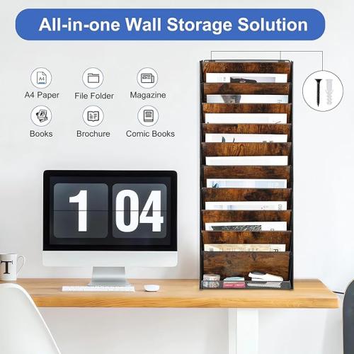 Ongeopend, in seal, Solinxe Hangende muurvijlhouder, bureau post papier documentenmap organizer met onderste lade tijdschriftenrek (zwart/antiek, 10 lagen), B0D3PP5YK7 - YJ-0447