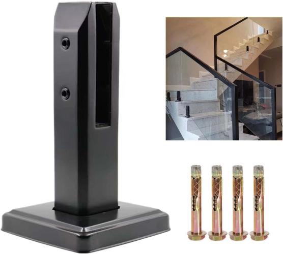 Ongebruikt, ok, bouten ontbreken, KMERCE Grote zwarte roestvrijstalen glasklem voor zwembadomheiningen, 304 balkonrelingklem voor leuning, trapleuning, H200mm, voor glas 10-16mm, B0C6H2QDJ9