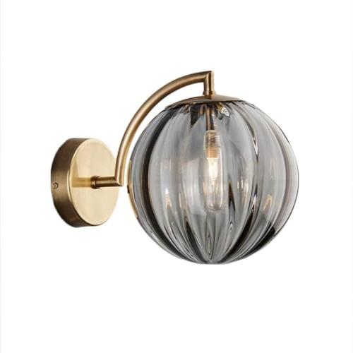 Ongeopend, in seal, LFsem Glazen Globe wandlamp (Ø15cm) grijs glazen bol en messing houder wandlamp lichten metalen beugel wandlamp (grijs), B08SM283NM