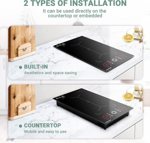 Ongebruikt, getest en werkend, volledig, ok, AMZCHEF Inductiekookplaat (2 zones), dubbele inductiekookplaat met flexibele zones en stekker, 10 vermogensniveaus, veiligheidsslot en timer, aanraakschuifregelaar, 3300 W, zwart, B0CNXK8RL5