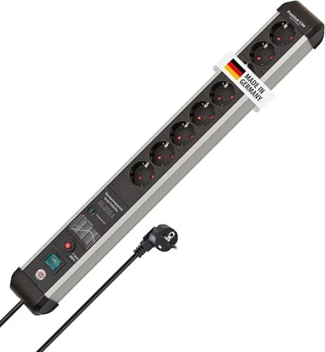 Ongebruikt, getest en werkend, ok, Brennenstuhl Premium-Protect-Line, stekkerdoos 8-voudig met overspanningsbeveiliging 60.000 A (3m kabel, met schakelaar, Made in Germany) zilver/zwart, B09S64J8Y7