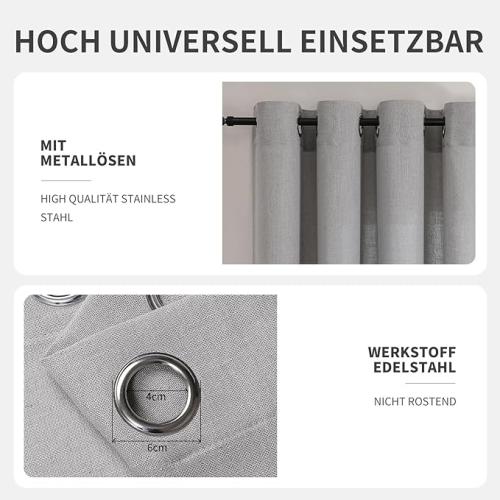 Ongeopend, Joydeco Transparant gordijn van linnen met ogen, set van 2 semi-ondoorzichtige gordijnen, 132 x 260 cm (b x h), grijs, lichtdoorlatend , B0D3FWYWF1