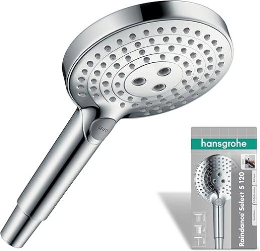 Ongebruikt, volledig, ok, licht beschadigde verpakking, Hansgrohe Raindance Select S 120 Handdouche, Douchekop met 3 Straalsoorten, chroom, 26530000, B00G44JQPQ