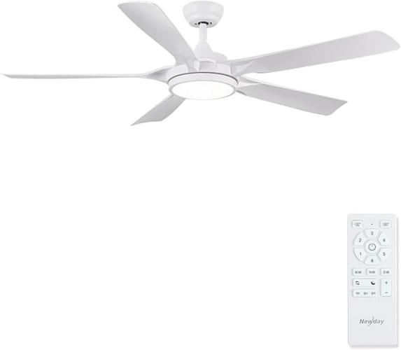 Ongebruikt, getest en werkend, volledig, ok, Newday witte plafondventilator, 142 cm stille plafondventilator met licht en afstandsbediening, dimbare plafondventilatorbladen met licht, grote plafondventilator met 5 bladen, geheugenfunctie, B0CPLRQ241