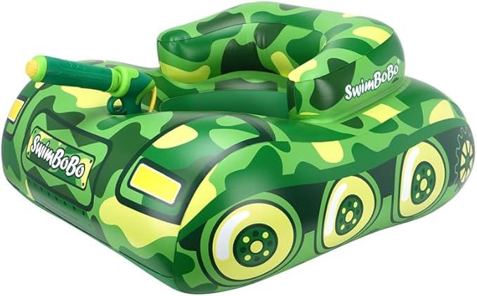 Ongeopend, ok, Swimbobo Opblaasbare Zwemband voor Peuters met Verstelbare Zonnekap en Veiligheidszitje, Zwembadspeelgoed voor Kinderen (Groene tank), B0D1JSX6ST