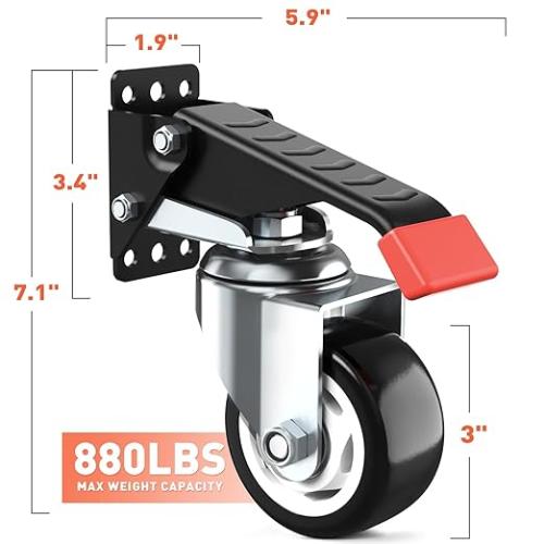 Ongeopend, SPACEKEEPER Workbench Casters Werkbank Wielen-kit tot 400 kg - 3 inch (7,5 cm) krachtige wielen voor werkbanken, machines en tafels, 4 stuks, witte "velg" - zwarte band B08FDFJXK5