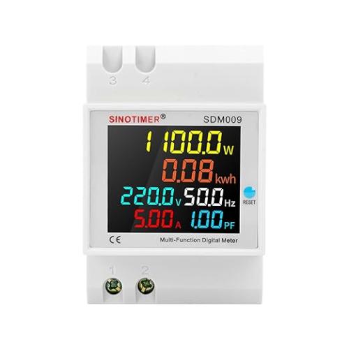 Ongeopend, ok, 2 x Sinotimer Ampèremeter eenfasig 6-in-1 AC ampèremeter voltmeter, digitale stroomverbruikmonitor AC40-300V 100A, B0DK6H98L3