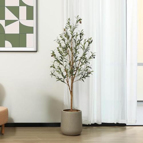 Ongeopend, SOGUYI Kunstmatige olijfboom, 150 cm hoog, met natuurlijke houten stam en realistische vruchten voor thuis en op kantoor, kunstboom in pot, B0BXS12NGH