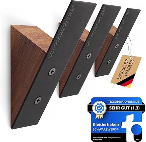 Ongeopend, ok, SCHWARZWERK® Set van 3 wandhaken, kapstok, met montagemateriaal, haken voor handdoeken, hoeden, kapstokken, kapstokken, kapstokken, kapstok (walnootzwart), B0CHK61L1B